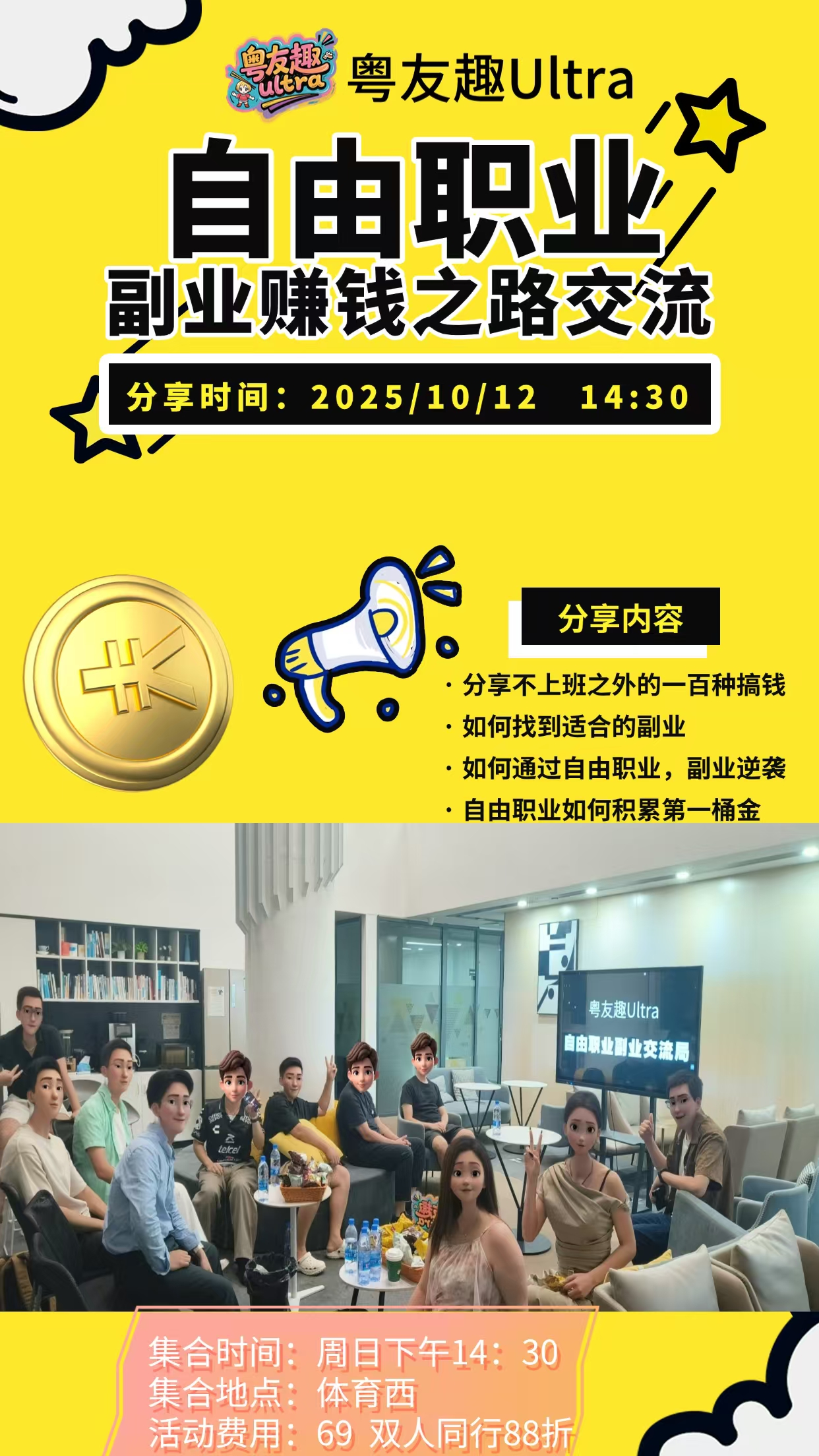 一个人闭门造车,不如找搭子一起前行 大家一起分享行业趣事,破圈交流,资源对接,向上社交,链接创业等等 做点新鲜事,认识点新朋友, 和有想法,有态度,有好奇心的朋友以轻松愉悦的方式, 聊一聊自己的故事、困惑, 看到一个更多元化的世界这次主题自媒体交流会