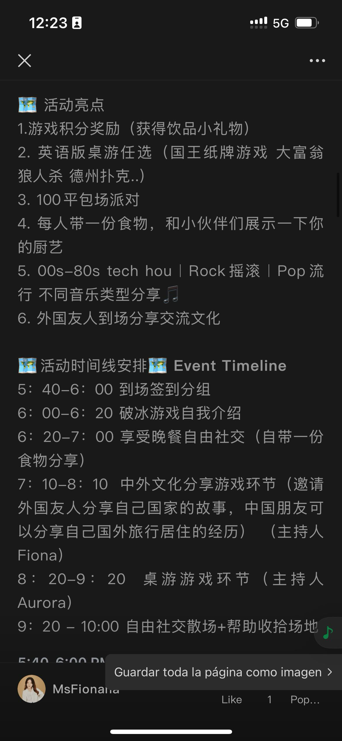 🗺️ 活动亮点1.游戏积分奖励(获得饮品小礼物) 2. 英语版桌游任选(国王纸牌游戏 大富翁 狼人杀 德州扑克..) 3. 100平包场派对4. 每人带一份食物,和小伙伴们展示一下你的厨艺5. 00s-80s tech hou|Rock摇滚|Pop流行 不同音乐类型分享🎵 6. 外国友人到场分享交流文化