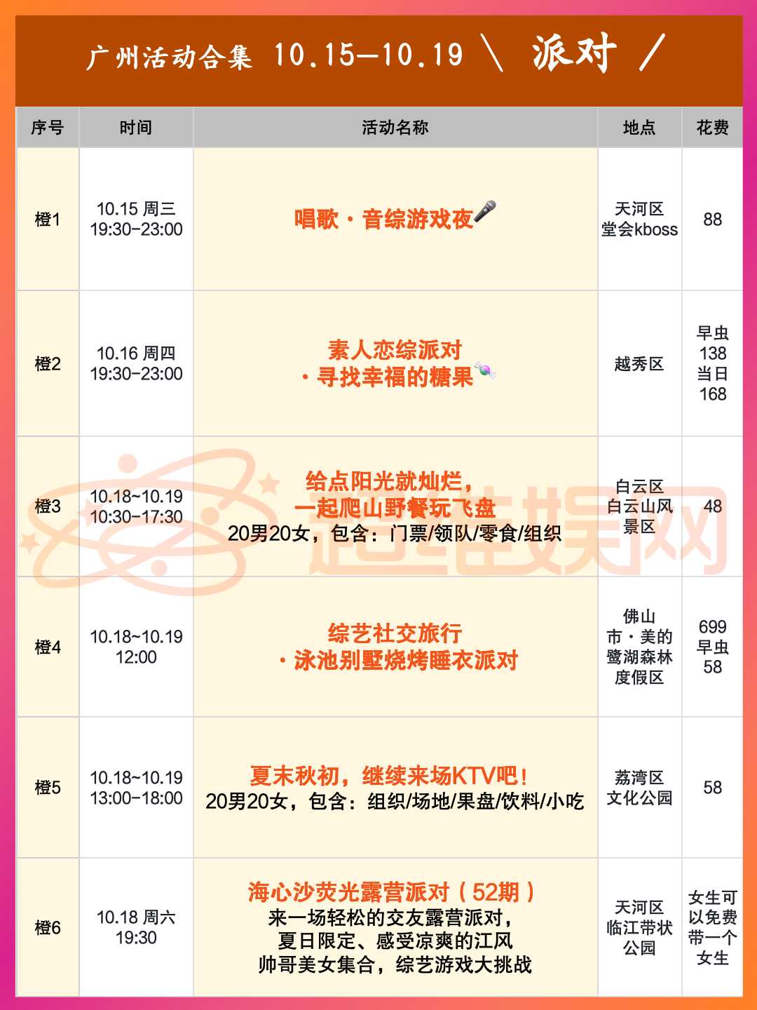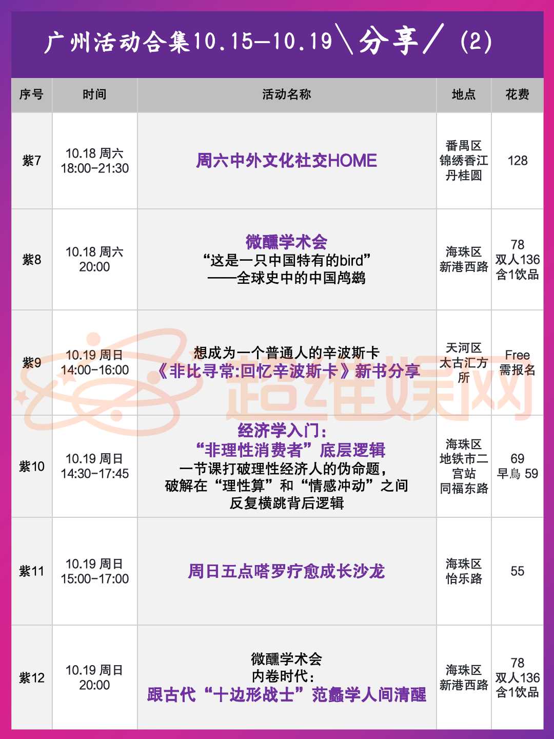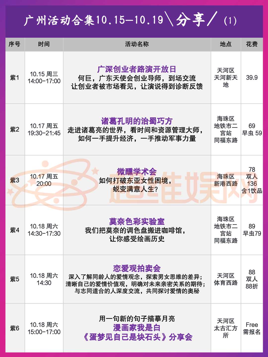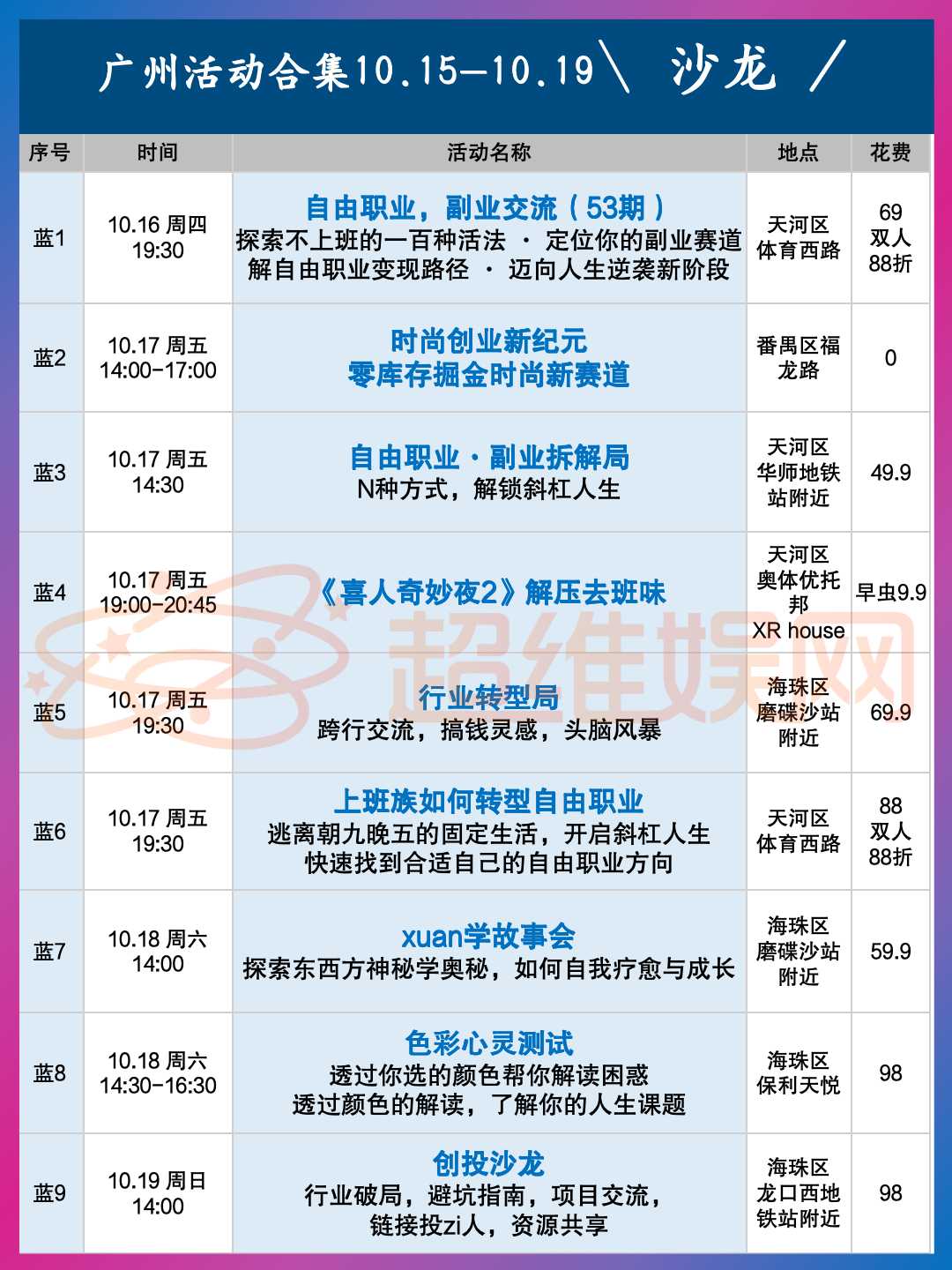 广州10.10-10.15线下活动合集!