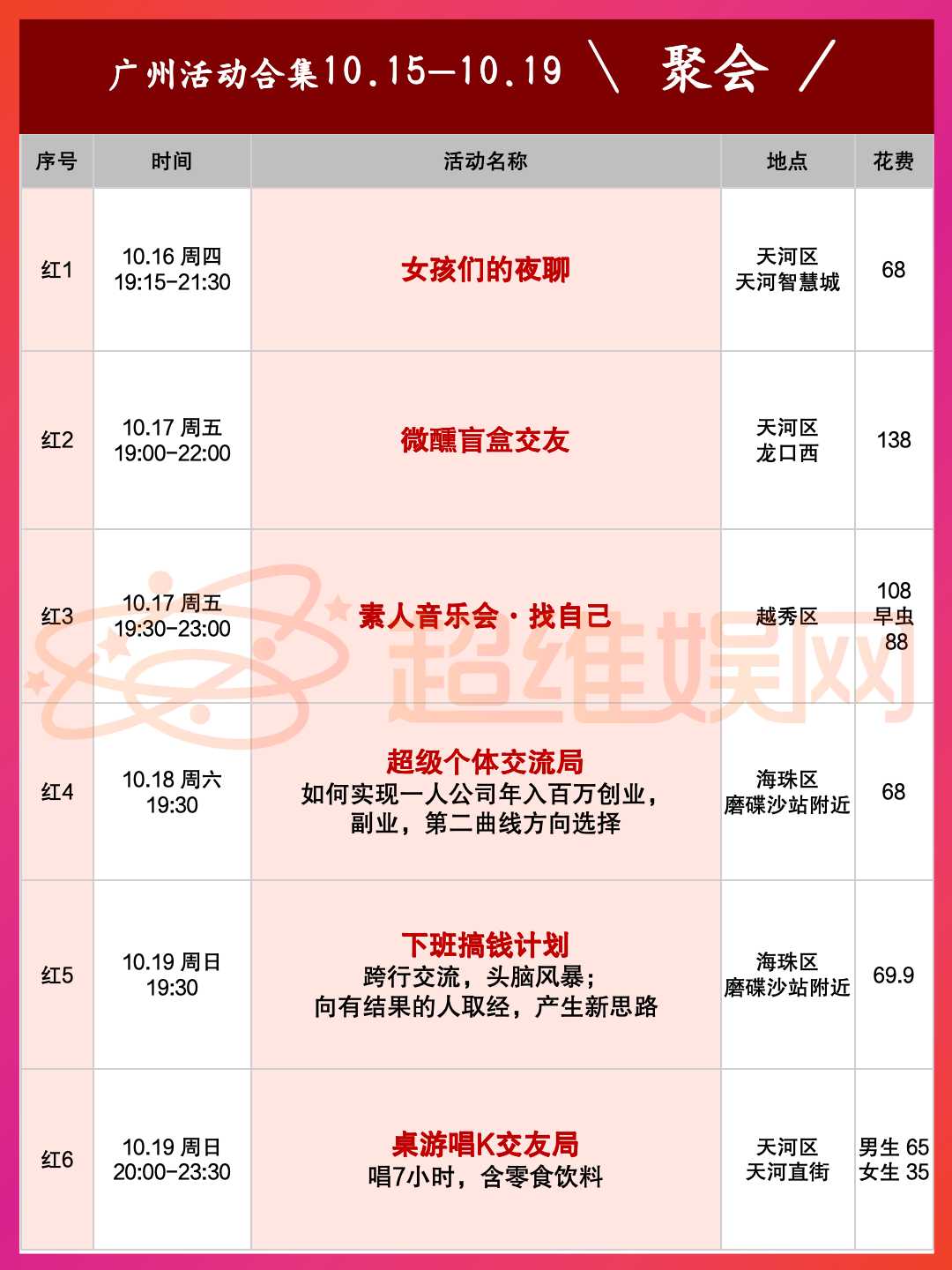 关注公众号“超维娱网广州同城活动”还有更多有意思的活动和福利哦!
